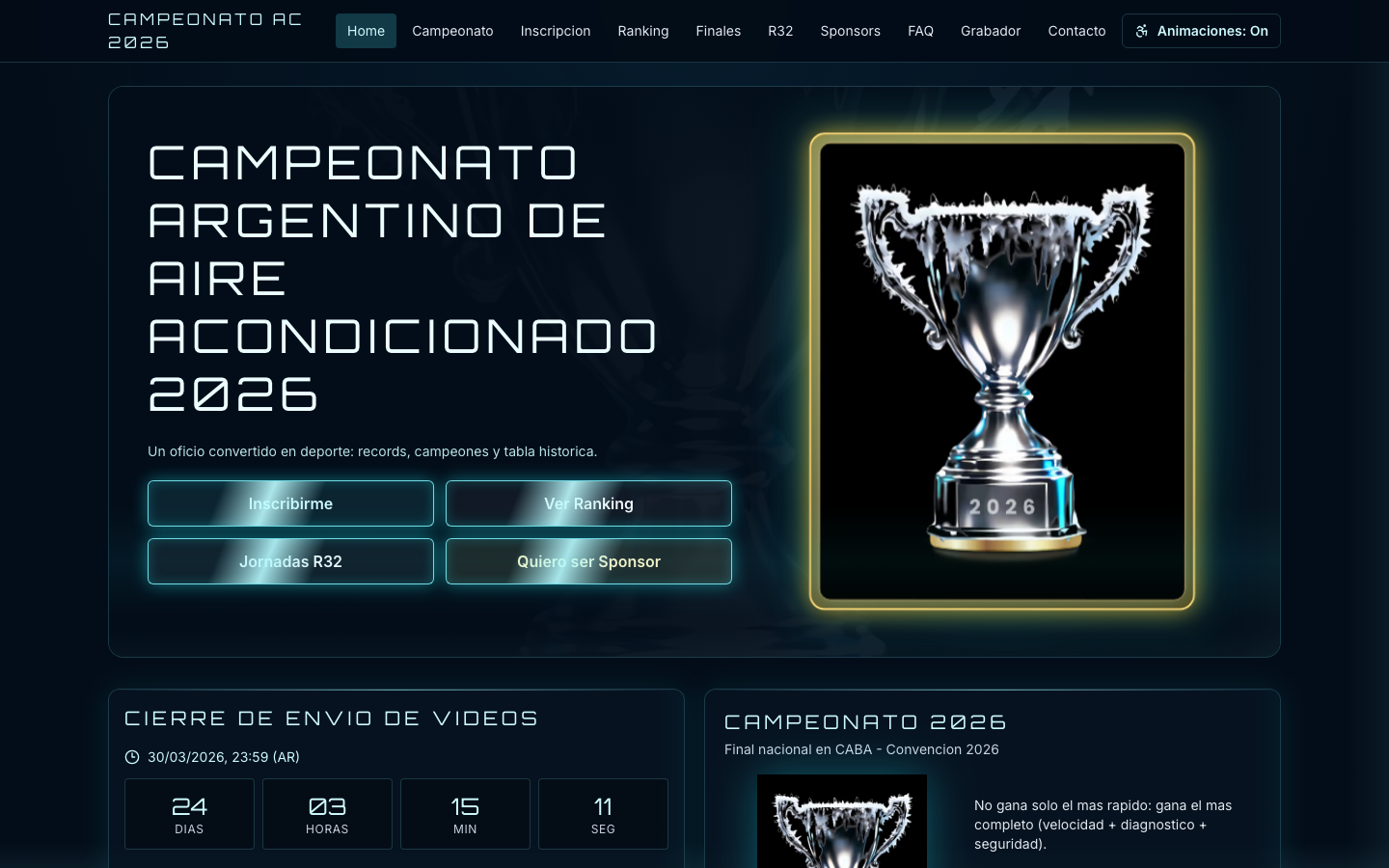 Sitio oficial del campeonato nacional de técnicos en aire acondicionado con inscripciones, categorías y resultados en vivo.